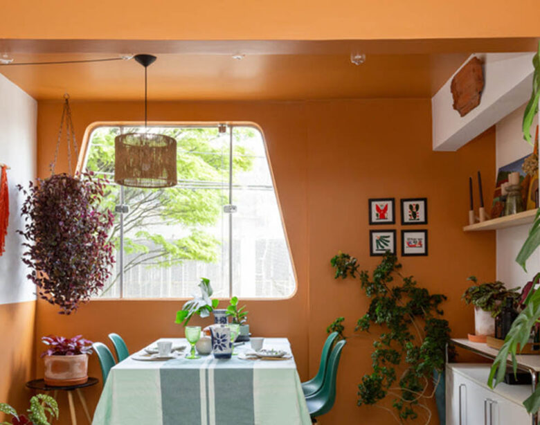 “O ambiente da imagem traduz perfeitamente a essência dos signos de fogo. Com paredes em um tom alaranjado intenso, a sala de jantar se torna acolhedora, cheia de vida e ideal para encontros e momentos de troca, características que combinam com a natureza expansiva de Áries, Leão e Sagitário. A presença de plantas e a luz natural equilibram a composição, reforçando o bem-estar e a vitalidade do espaço”, comenta Natália.